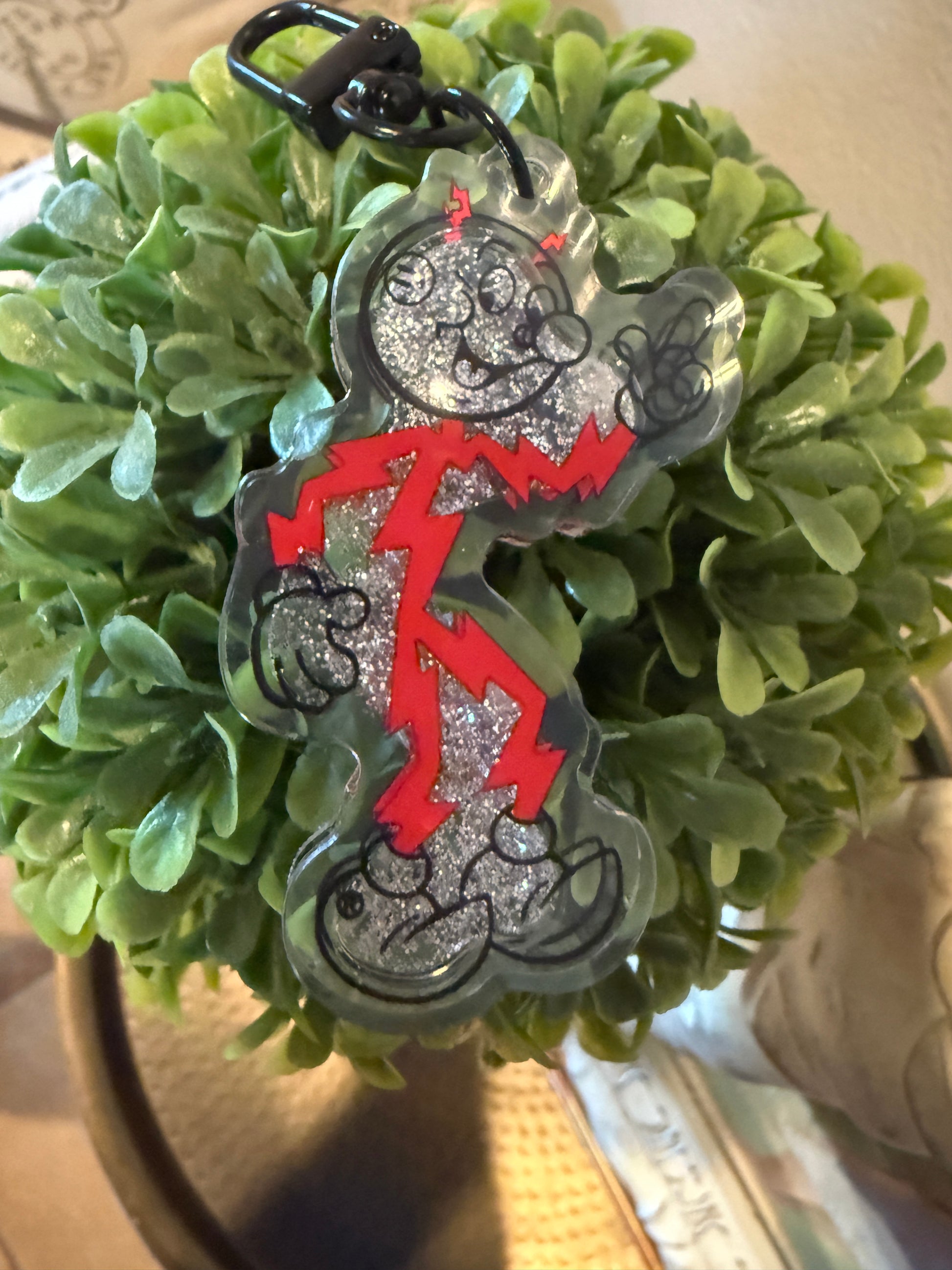 Kilowatt large 2.5 inch keychain, has glitter and liquid inside