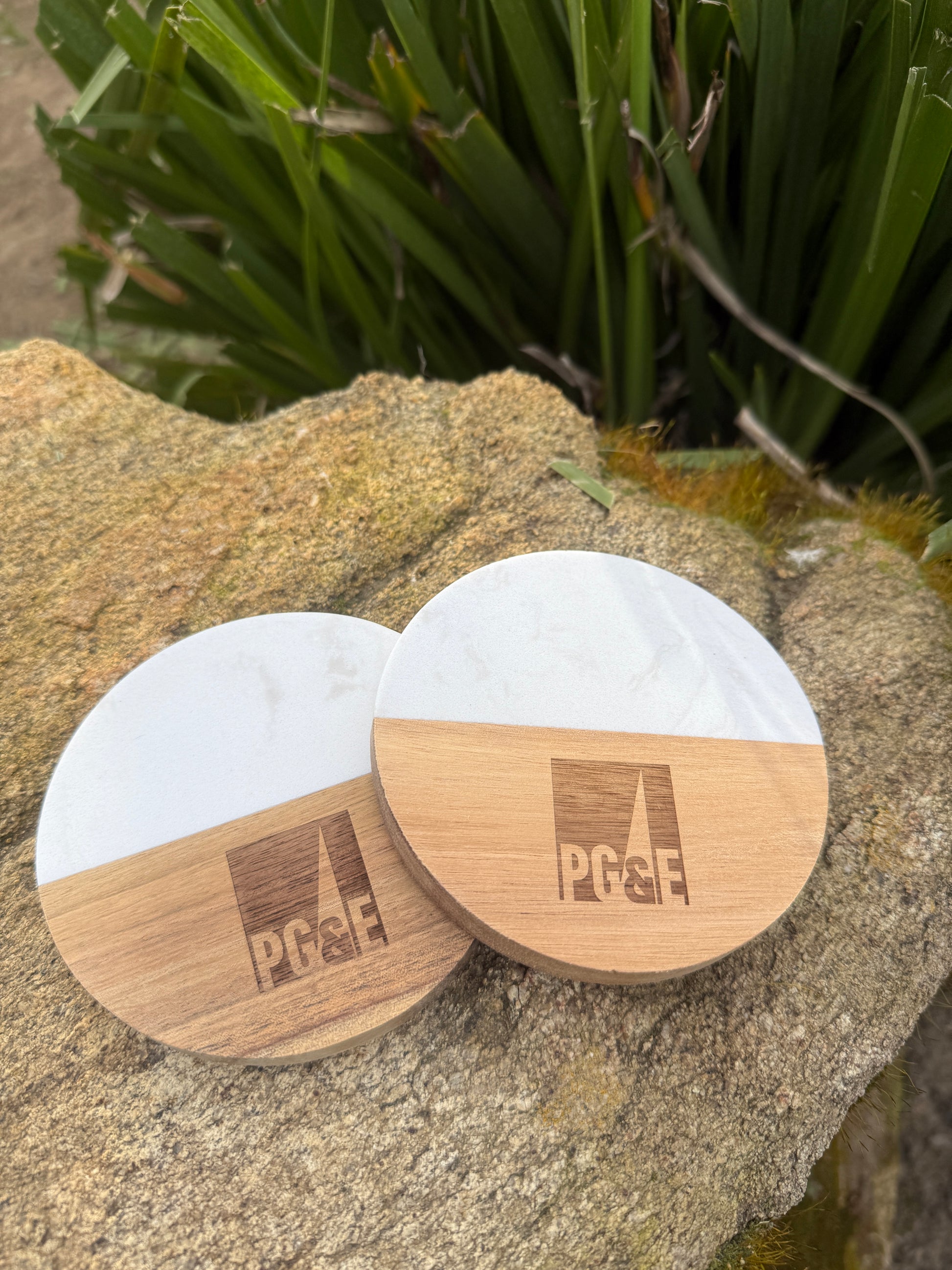 Set of 4 marble/wood coasters